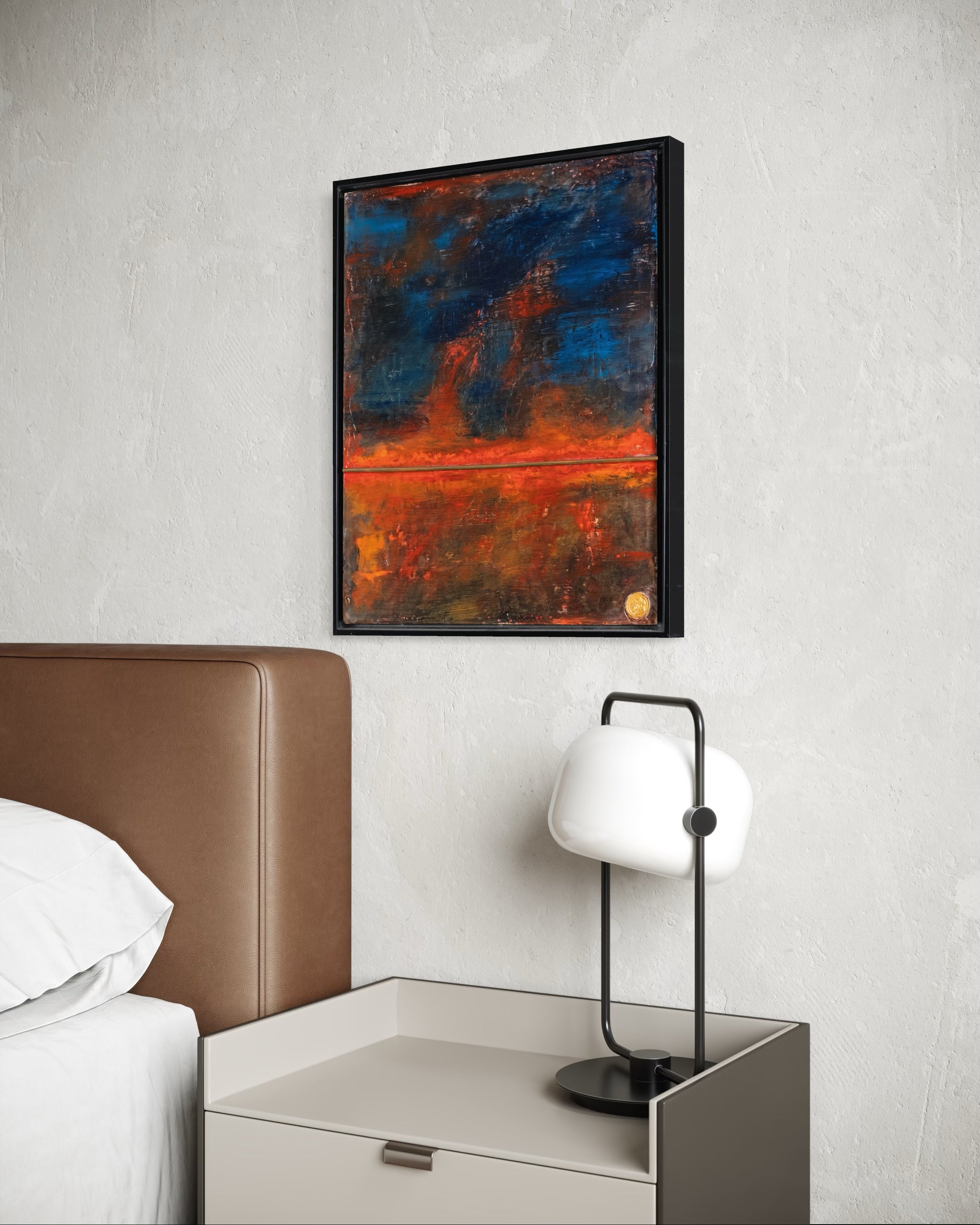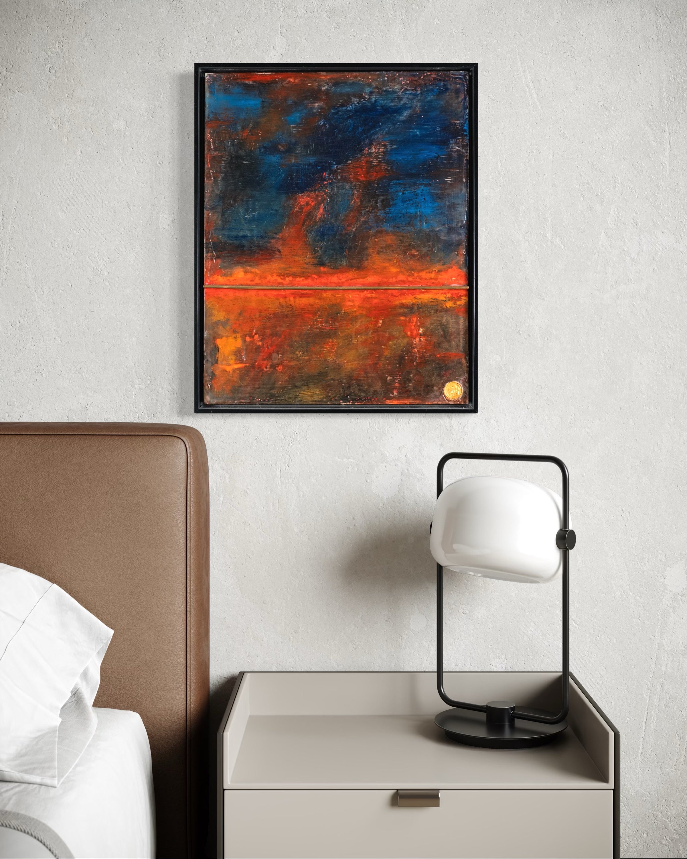This turbulent yet powerful piece captures the life’s storms, with swirling dark blues and fiery reds clashing across the piece. A firm, stabilizing rod cuts through the chaos, symbolizing strength and resilience amid turmoil. The composition evokes both struggle and steadfastness, reminding us of the anchors that hold us steady when life feels overwhelming.